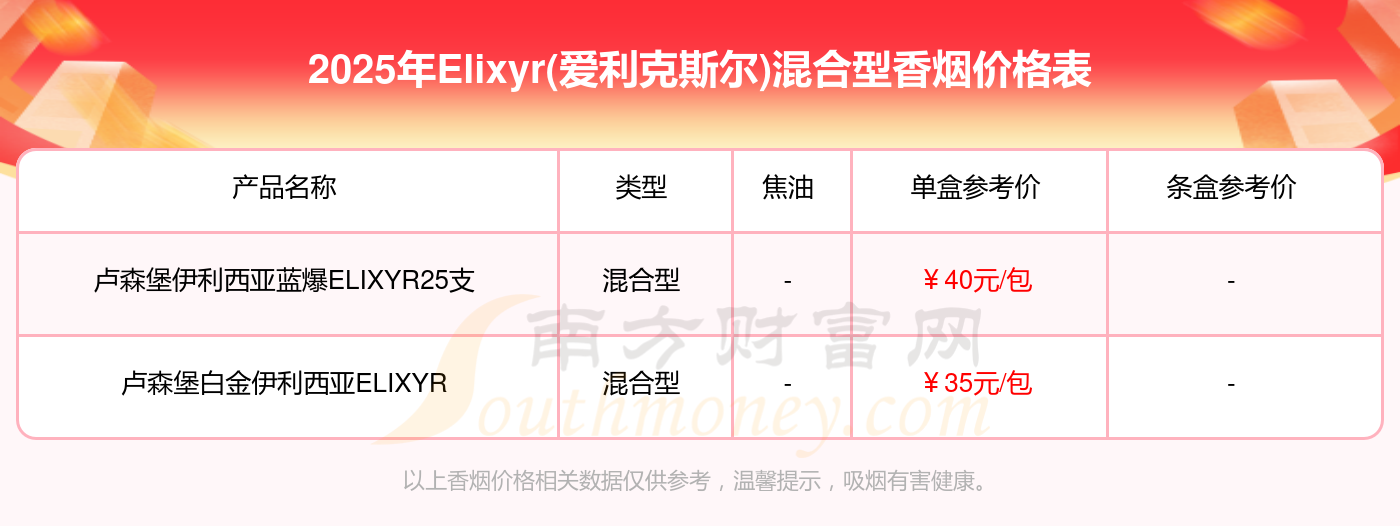 2025Elixyr(愛利克斯?fàn)?混合型香煙最新價格: