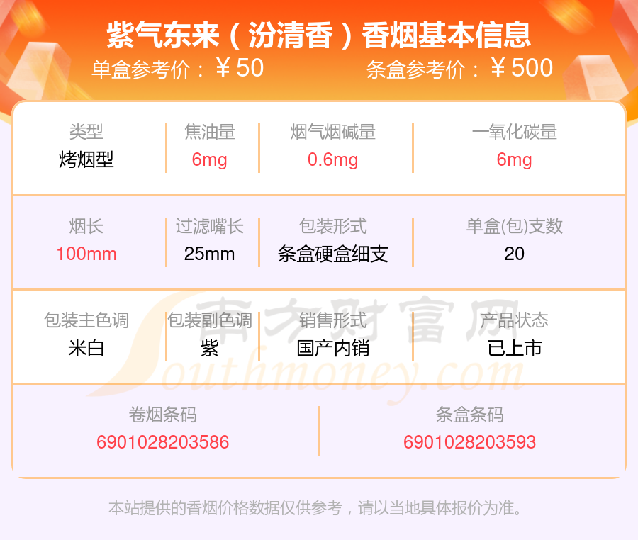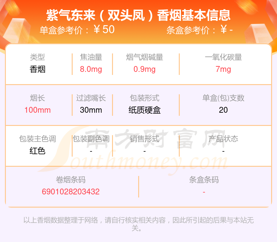 紫氣東來香煙40-70元的煙分別有紫氣東來(雙頭鳳)參考價50.0元/包、紫氣東來(汾清香)參考價50元/包等。