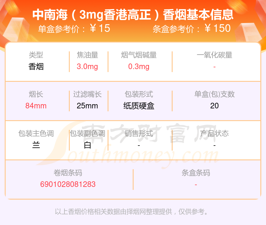 以上香煙價(jià)格相關(guān)數(shù)據(jù)由擇煙網(wǎng)整理提供,僅供參考。