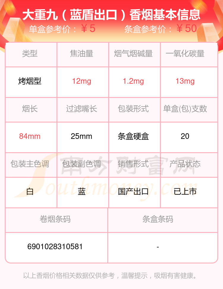 擇煙網(wǎng)為大家盤點了大重九香煙煙堿低于3mg的煙,有以下這些: