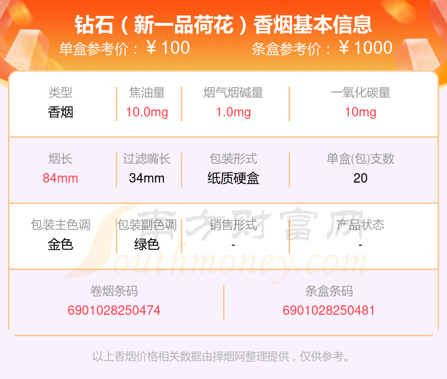 擇煙網(wǎng)為大家盤(pán)點(diǎn)了煙堿量低于1mg的鉆石香煙,分別有鉆石(迎賓)、鉆石(經(jīng)典醇和)、鉆石(新一品荷花)、鉆石(玫瑰2代)、鉆石(傳奇子龍)、鉆石(軟荷花出口版)、鉆石(西柏坡1949)、鉆石(紅如意)、鉆石(硬紅)、鉆石(軟綠)等,具體價(jià)格如下: