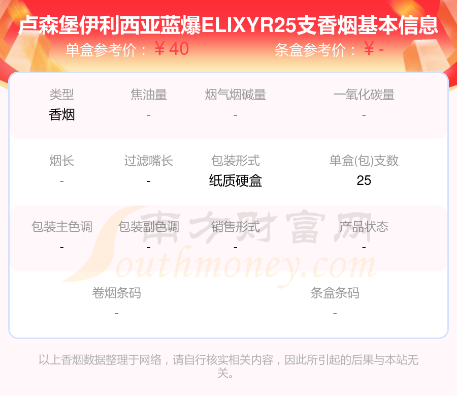 盧森堡伊利西亞藍爆ELIXYR25支參考價40.0元/包、盧森堡白金伊利西亞ELIXYR參考價35.0元/包等。