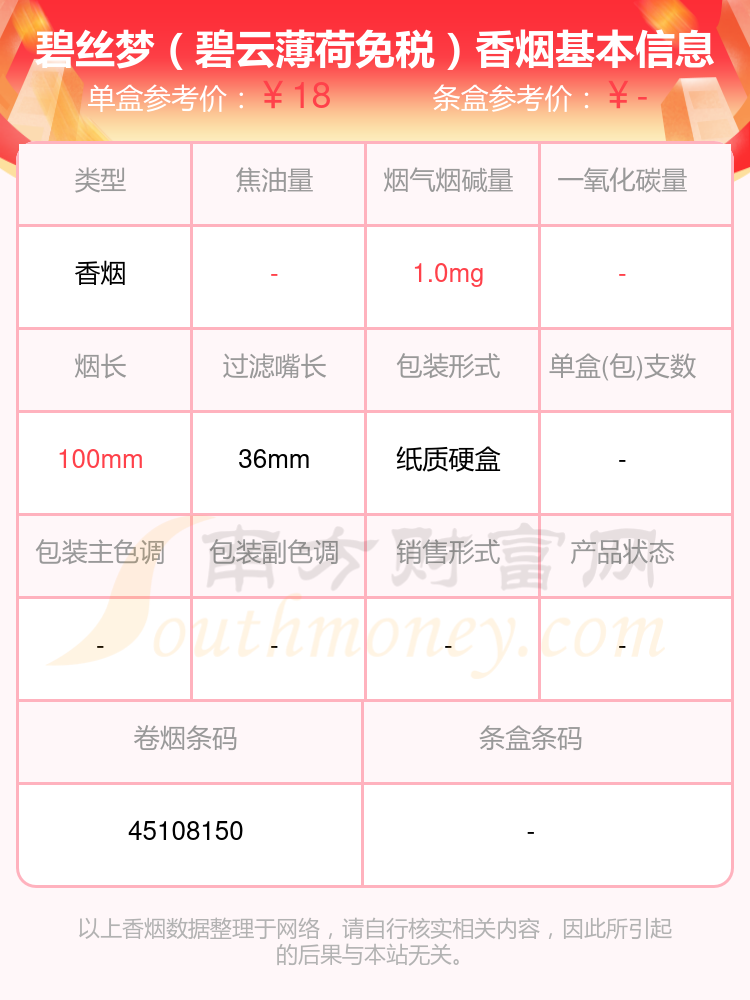 1、碧絲夢(mèng)(碧云薄荷免稅)