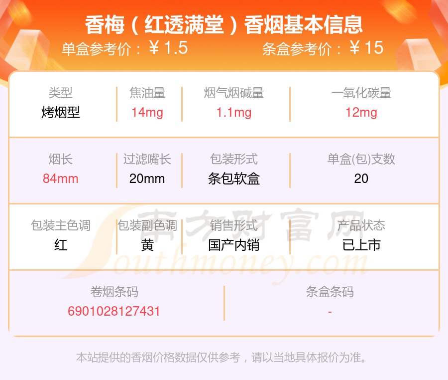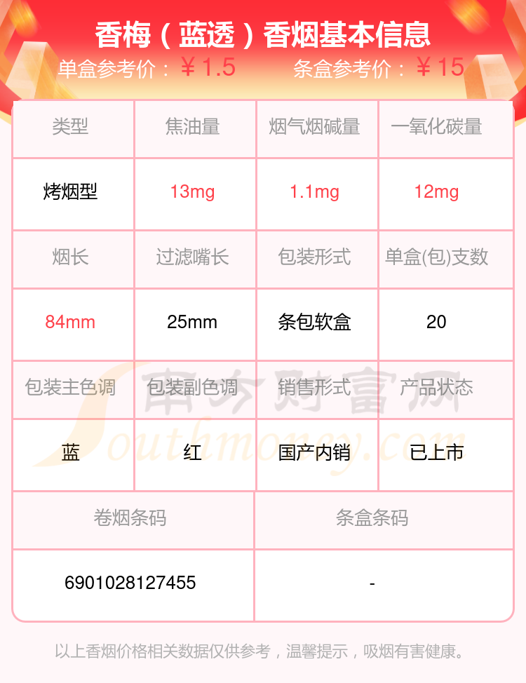 香梅(紅透滿堂)參考價(jià)1.5元/包、香梅(藍(lán)透)參考價(jià)1.5元/包等。