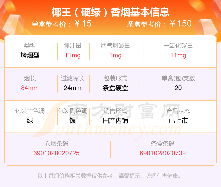 以上香煙數(shù)據(jù)整理于網(wǎng)絡(luò),請(qǐng)自行核實(shí)相關(guān)內(nèi)容,因此所引起的后果與本站無(wú)關(guān)。