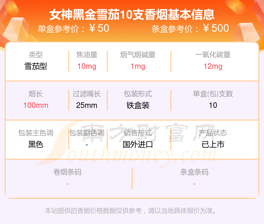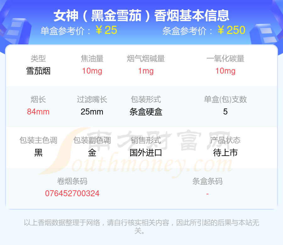 1、女神黑金雪茄10支