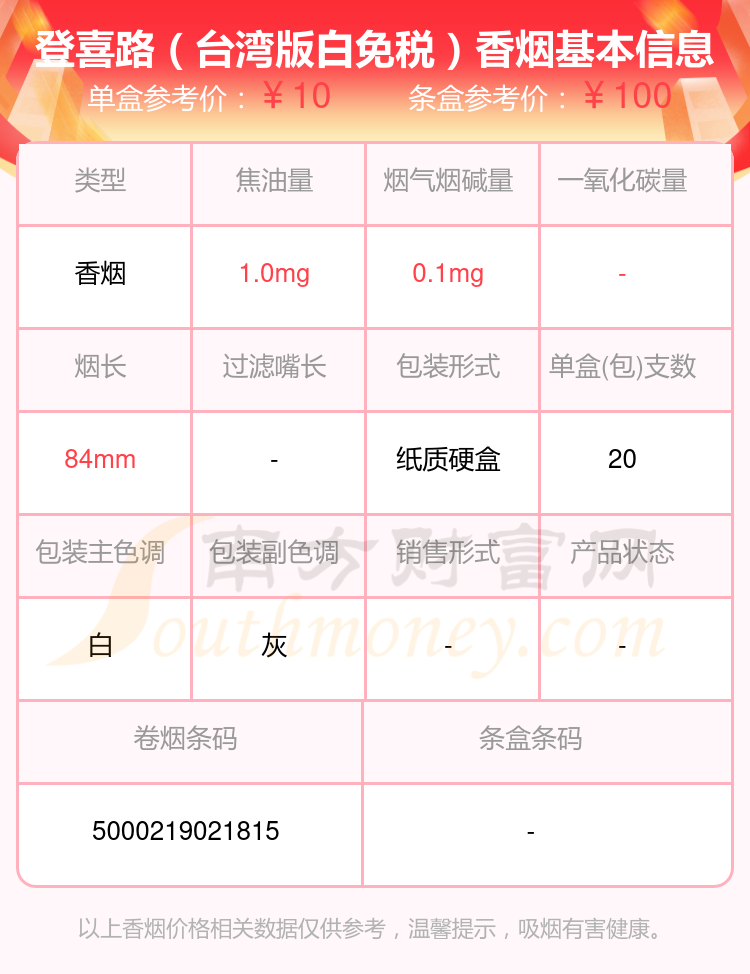 登喜路(韓版白免稅)參考價15.0元/包、登喜路(臺灣版白免稅)參考價10.0元/包等。