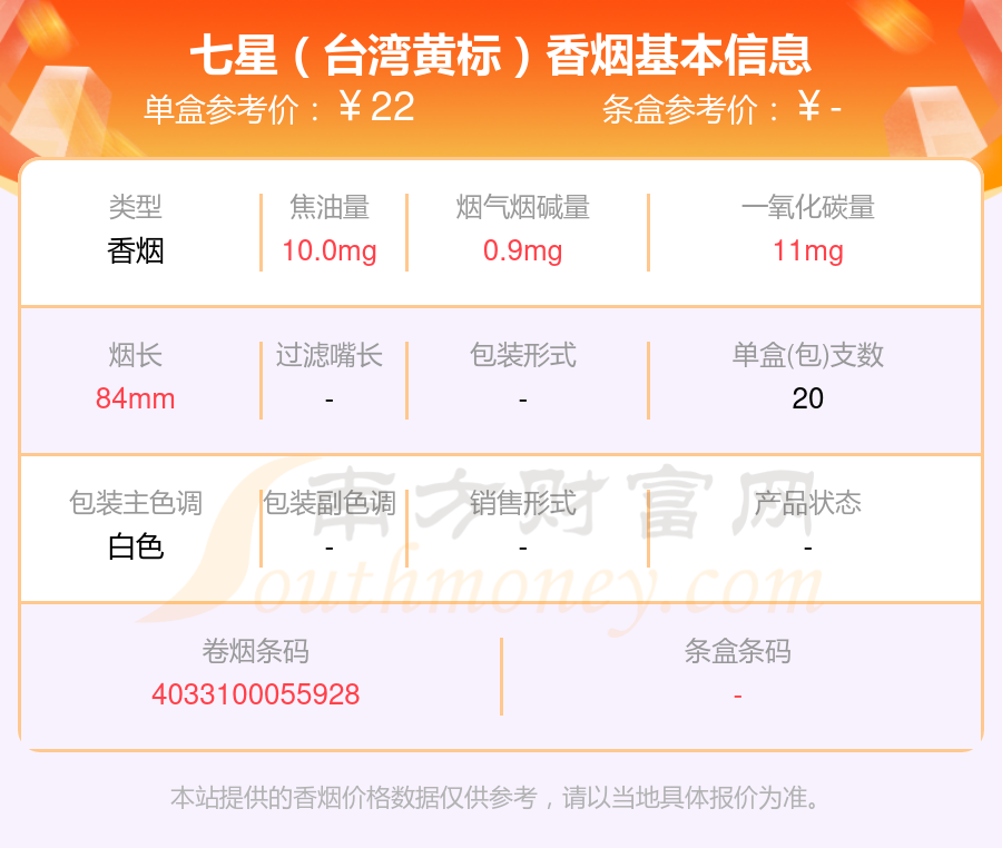 本站提供的香煙價格數(shù)據(jù)僅供參考,請以當?shù)鼐唧w報價為準。