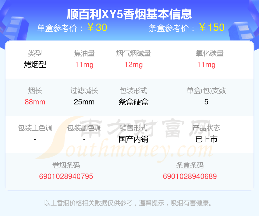 順百利香煙煙堿量3mg以上的煙有順百利XY5、順百利LP5等,具體價(jià)格如下: