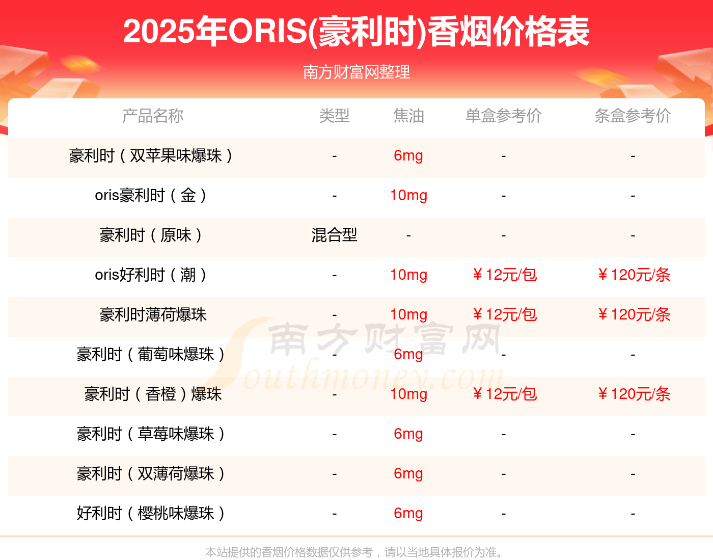 以上香煙數據整理于網絡,請自行核實相關內容,因此所引起的后果與本站無關。