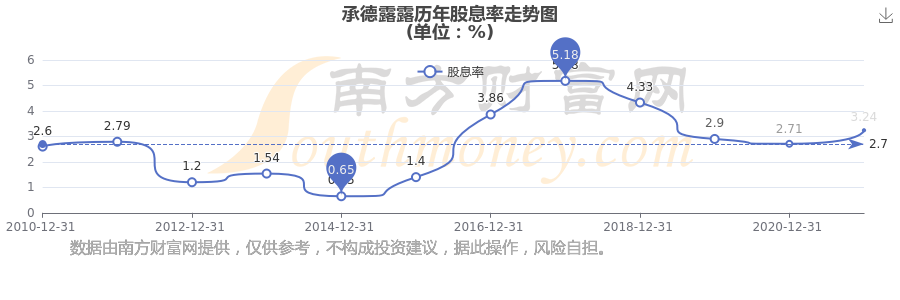 按照南方財富網(wǎng)趨勢選股系統(tǒng)統(tǒng)計,承德露露所屬行業(yè)為食品飲料行業(yè),食品飲料行業(yè)分紅排名情況如下表: