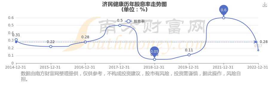 近年濟(jì)民健康年度股息率走勢(shì)如下圖: