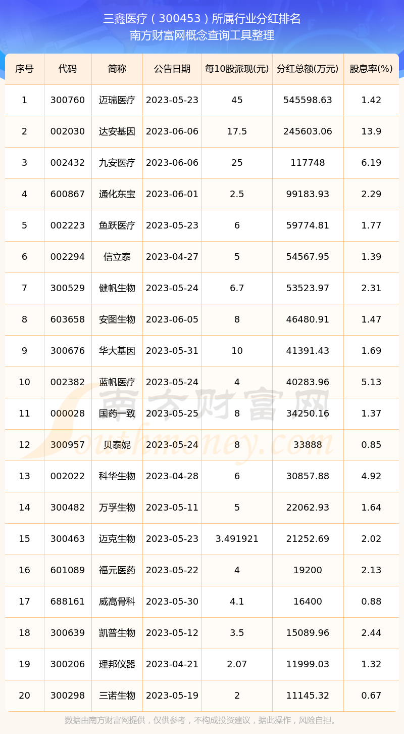 二、三鑫醫(yī)療300453行業(yè)分紅排名