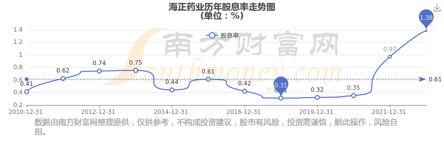 近年海正藥業(yè)年度股息率走勢如下圖: