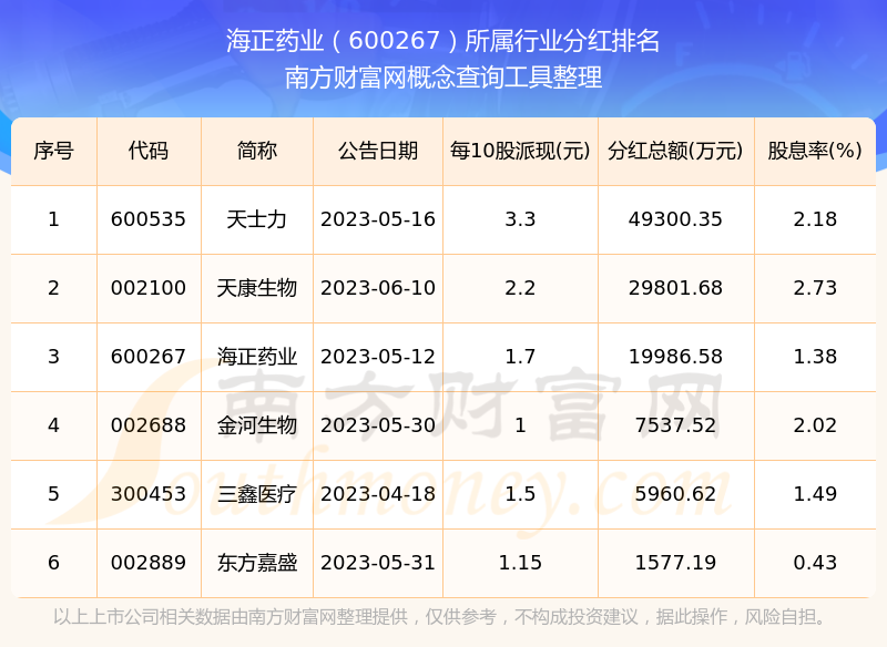 二、海正藥業(yè)600267行業(yè)分紅排名