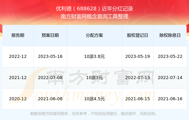 優(yōu)利德最新一次公布的分紅方案:10派3.8元。