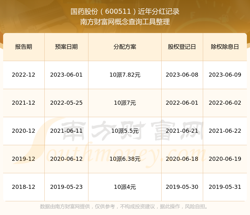 國藥股份最新一次公布的分紅方案為10派7.82元。本次權(quán)益分派股權(quán)登記日為2023年6月8日,除權(quán)除息日為2023年6月9日,派息日為2023年6月9日。