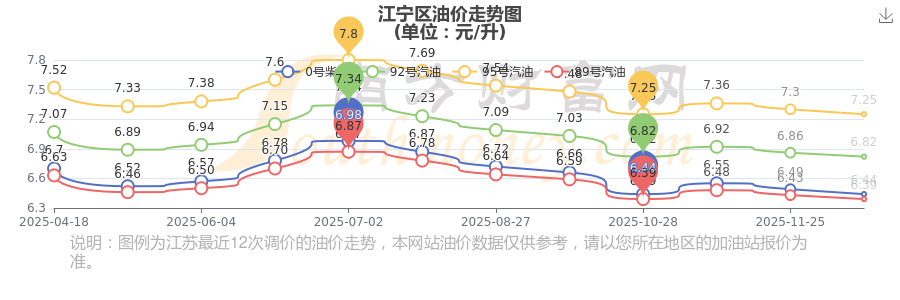 12月22日江寧區(qū)汽油、柴油每升的價格是多少?詳情如下:95號汽油為7.25元,下調了0.05元;92號汽油為6.82元,下調了0.04元;89號汽油為6.39元,下調了0.04元;0號柴油為6.44元,下調了0.05元,調整時間為12月9日。