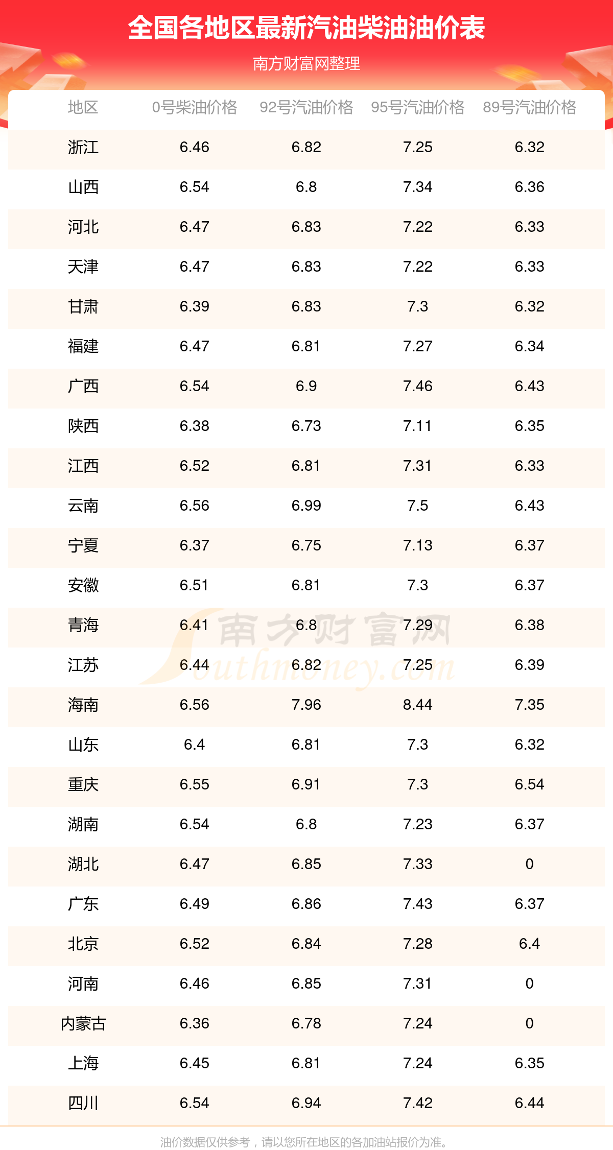2025年12月22日全國各地油價調(diào)整及最新汽油價格表