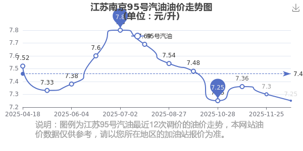 2025年江蘇南京汽油價(jià)格歷史走勢(shì)圖