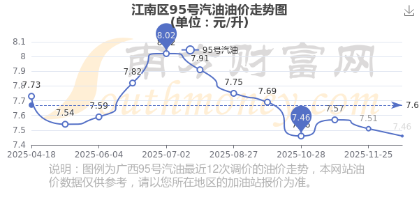 江南區(qū)95號(hào)汽油歷史油價(jià)走勢(shì)圖