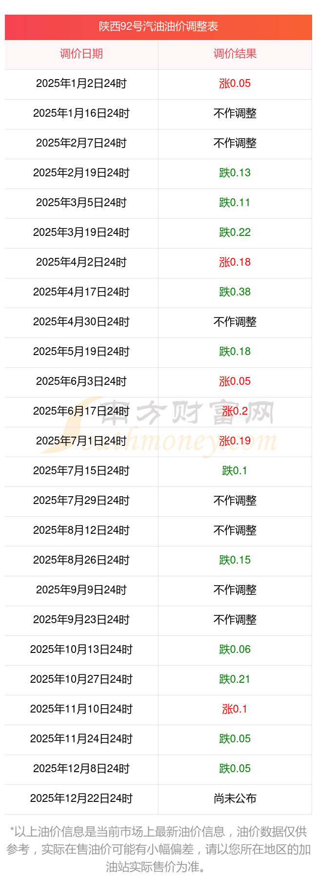 2025年陜西西安汽油價(jià)格調(diào)整時(shí)間及價(jià)格表