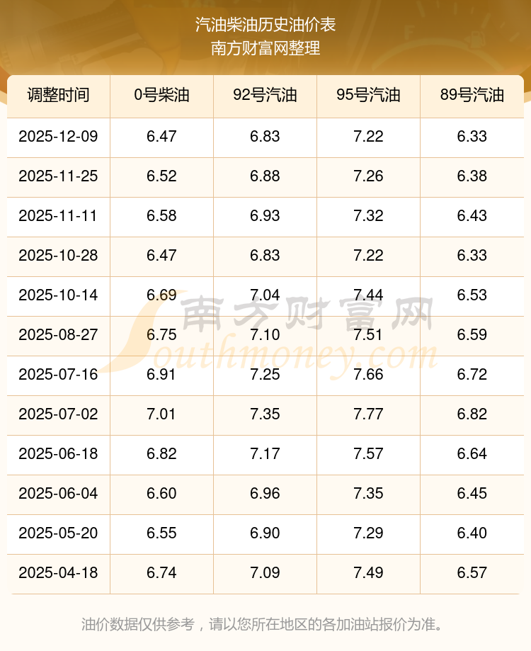 2025年92號汽油價格一覽表