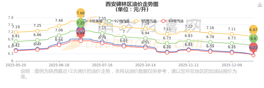 西安碑林區(qū)12月23日92號(hào)汽油歷史油價(jià)調(diào)整走勢圖