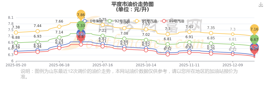 平度市汽油、柴油12月23日每升的價格是多少?12月23日調(diào)整后的價格詳情如下:92號汽油6.67元;95號汽油7.16元;89號汽油6.19元;0號柴油6.26元。