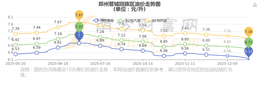2025年鄭州管城回族區(qū)12月23日汽油價格走勢圖