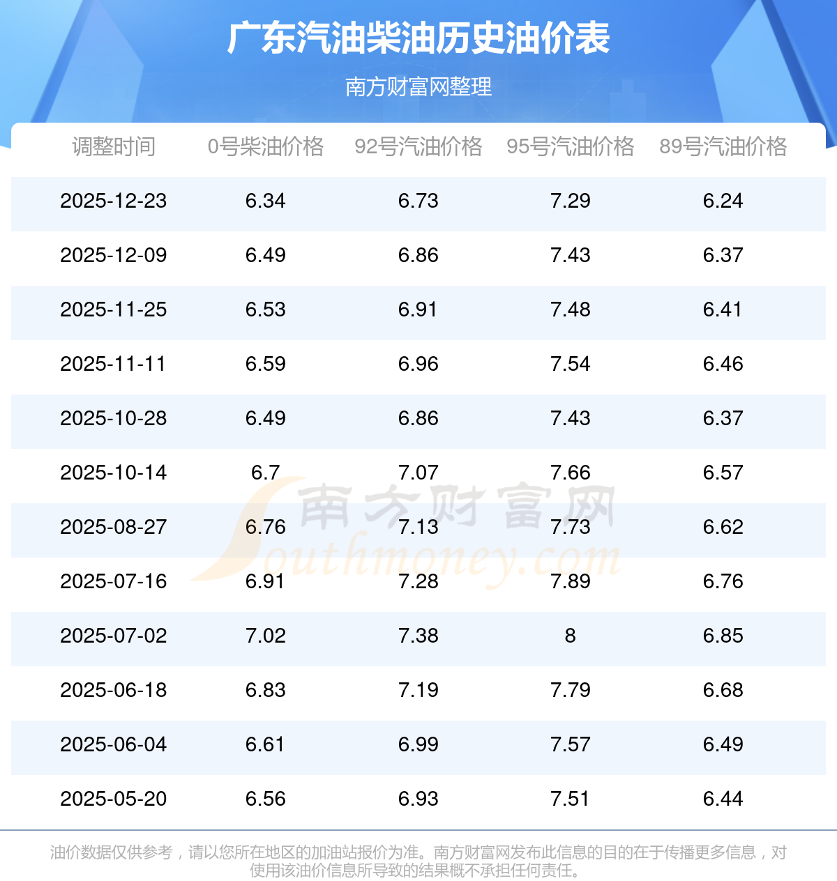 12月23日今日92號(hào)95號(hào)98號(hào)汽油價(jià)格