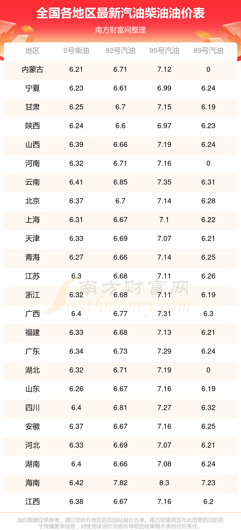 本站提供的油價數(shù)據(jù)僅供參考,具體數(shù)據(jù)以加油站報價為準。