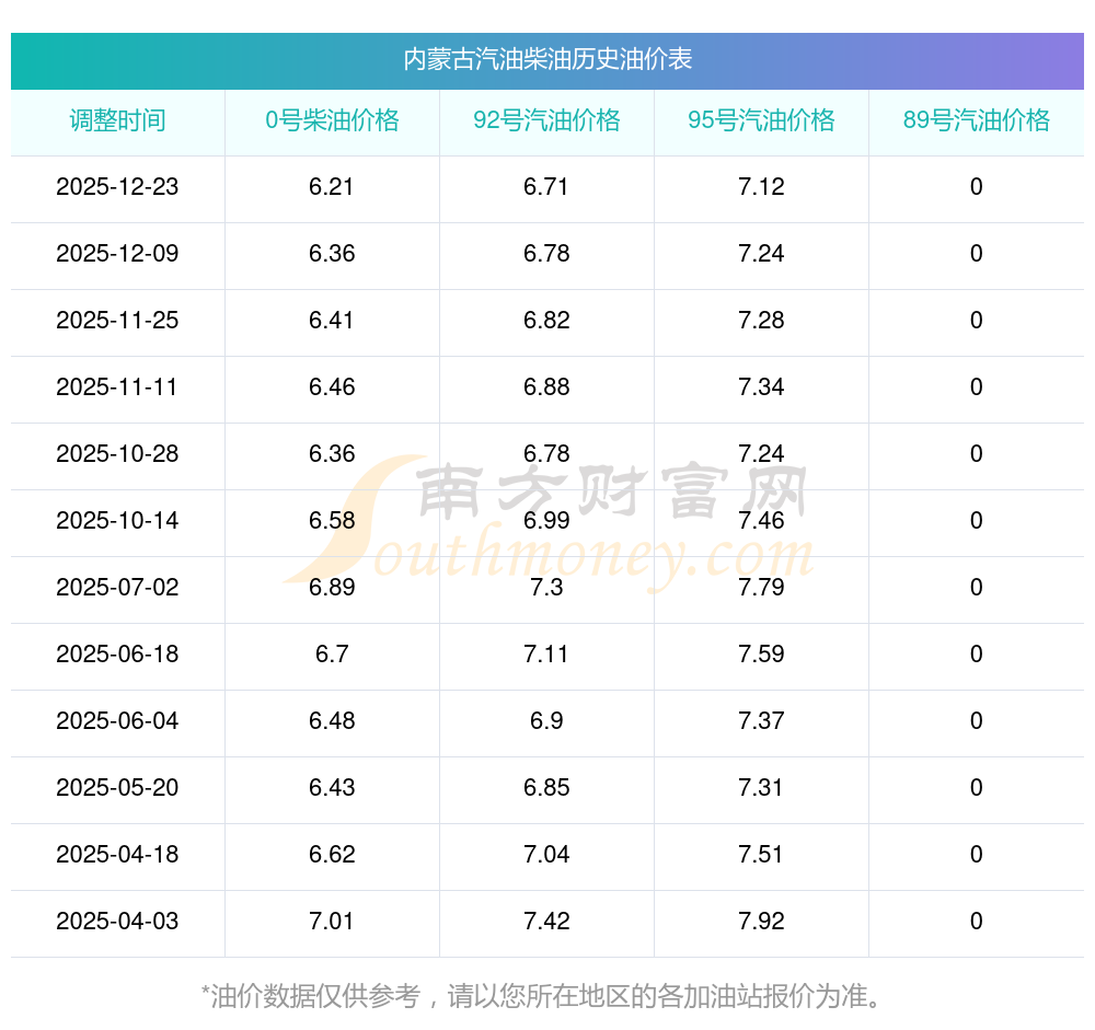 (12月24日)今日汽油價格一覽表