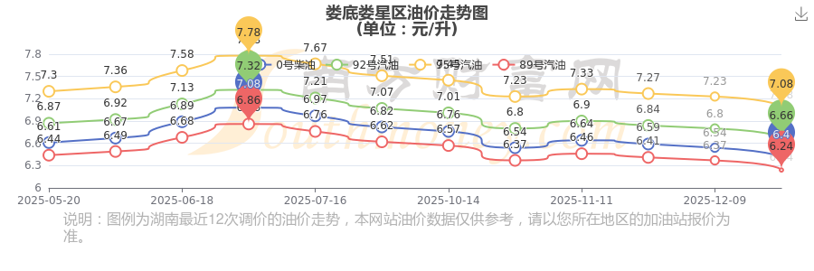 婁底婁星區(qū)汽油、柴油12月24日價格多少錢一升?具體為:0號柴油為6.4元,下調(diào)了0.14元;95號汽油為7.08元;92號汽油為6.66元;89號汽油為6.24元,調(diào)整時間為12月23日。