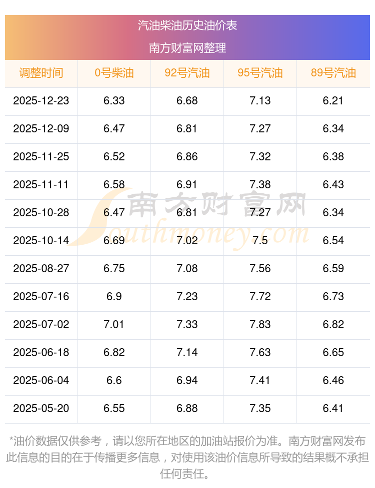 2025年92號汽油價格一覽表