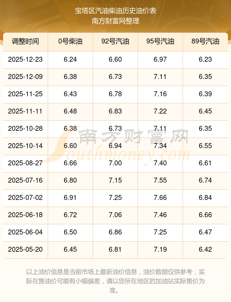 寶塔區(qū)歷史油價表