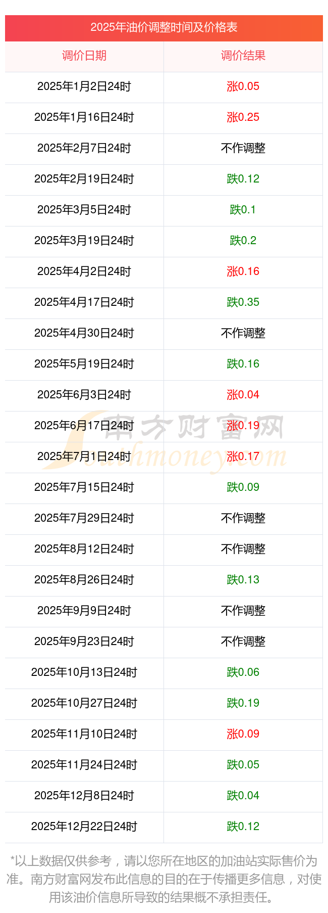 2025年瓊海萬泉鎮(zhèn)12月24日汽油價格調(diào)整時間表