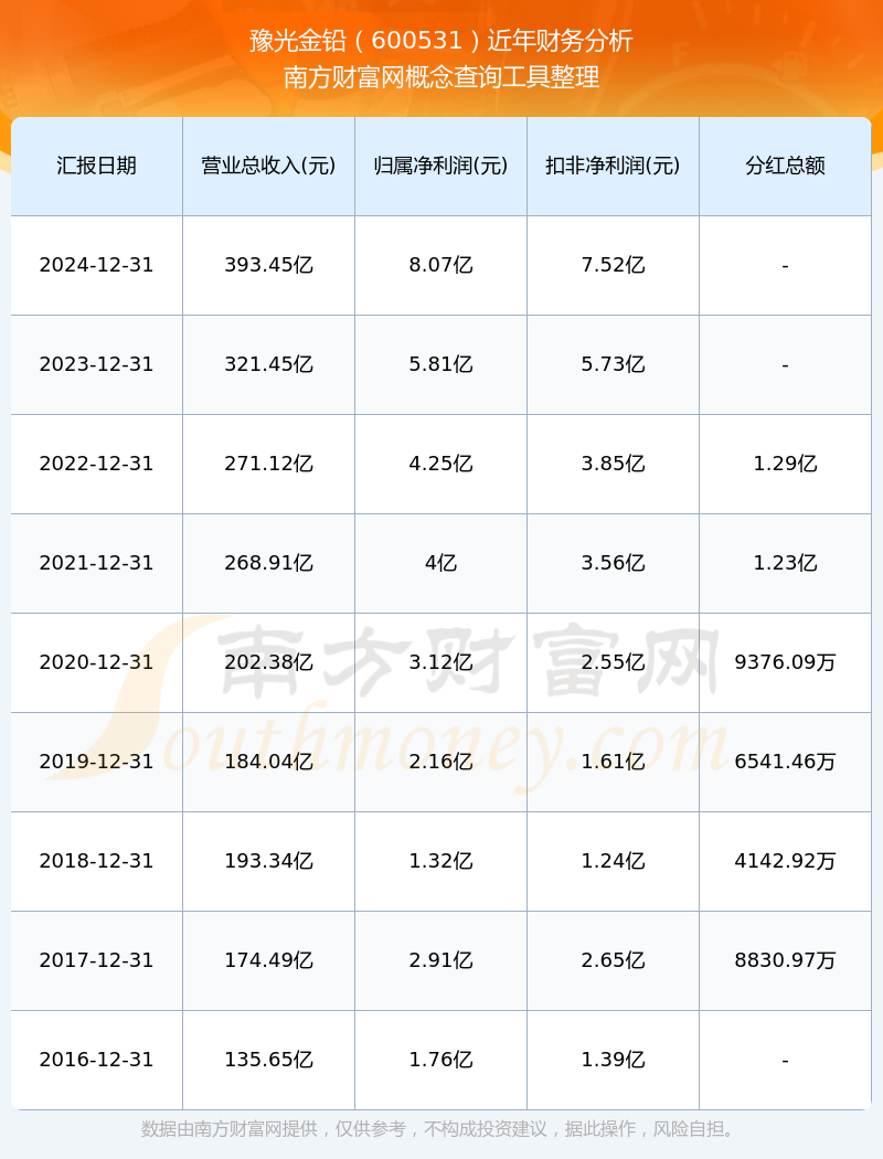 2024年報(bào)顯示,豫光金鉛實(shí)現(xiàn)營收393.45億,同比增長22.4%;凈利潤8.07億,同比增長38.88%;毛利率5.92%。