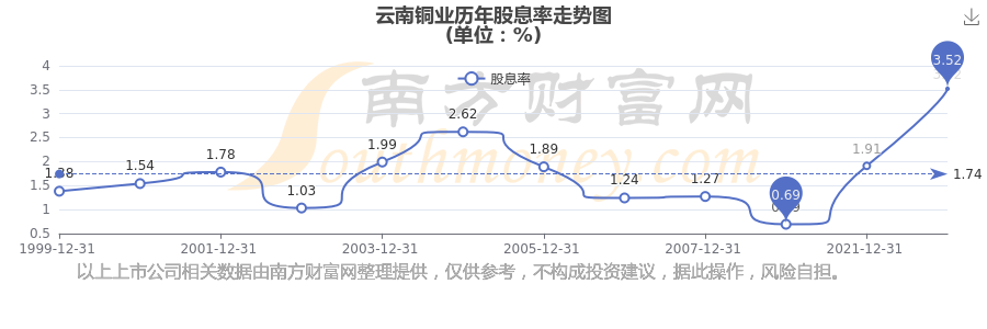 近年云南銅業(yè)年度股息率走勢如下圖: