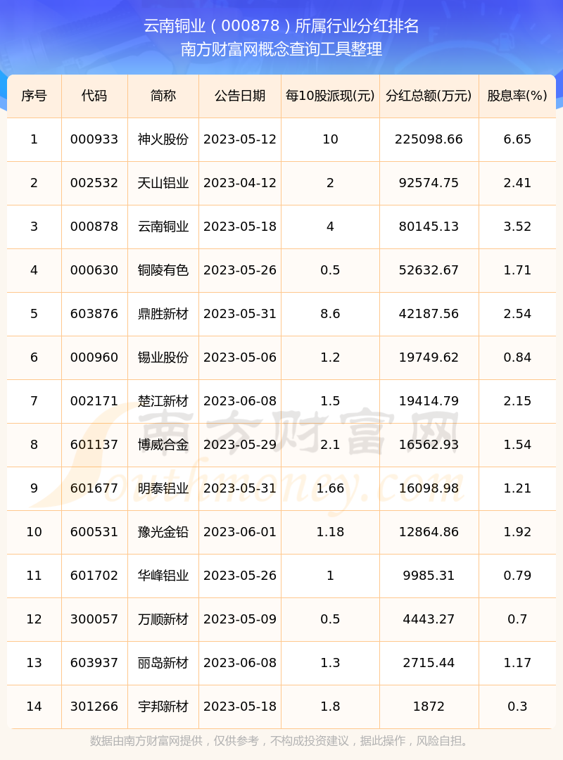 二、云南銅業(yè)000878行業(yè)分紅排名