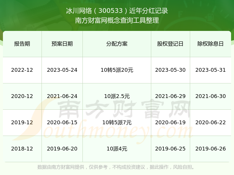 近年冰川網(wǎng)絡(luò)分紅派息情況如下表所示: