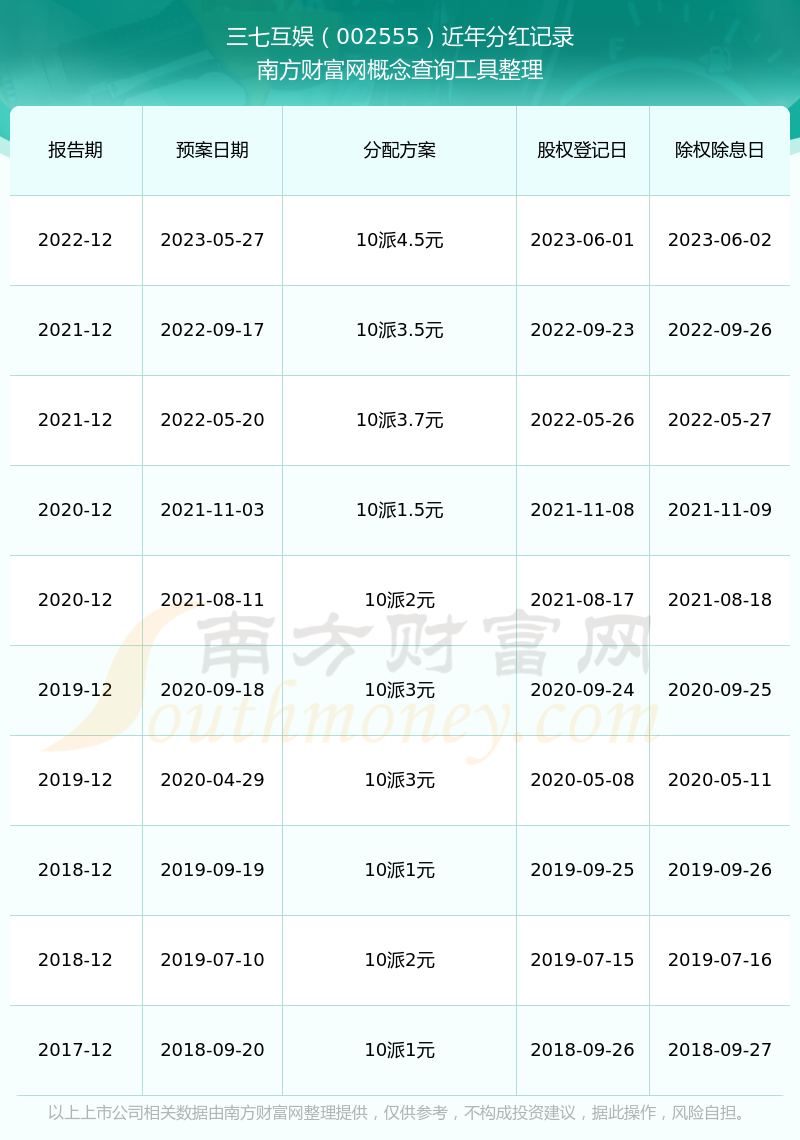 近年三七互娛分紅派息情況如下表所示: