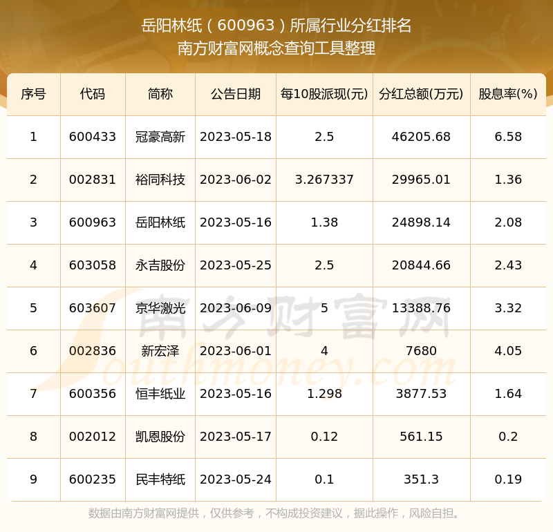 二、岳陽(yáng)林紙600963行業(yè)分紅排名
