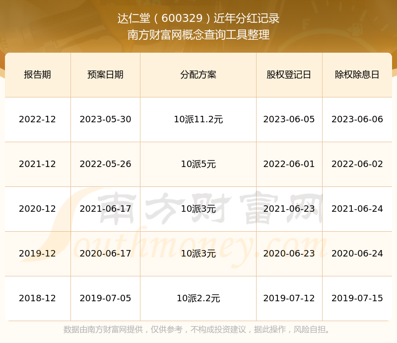 達(dá)仁堂最新一次公布的分紅方案:10派11.2元。