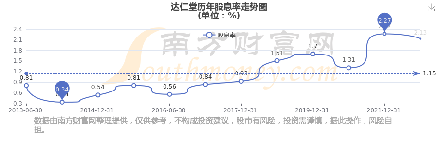 近年達(dá)仁堂年度股息率走勢如下圖:
