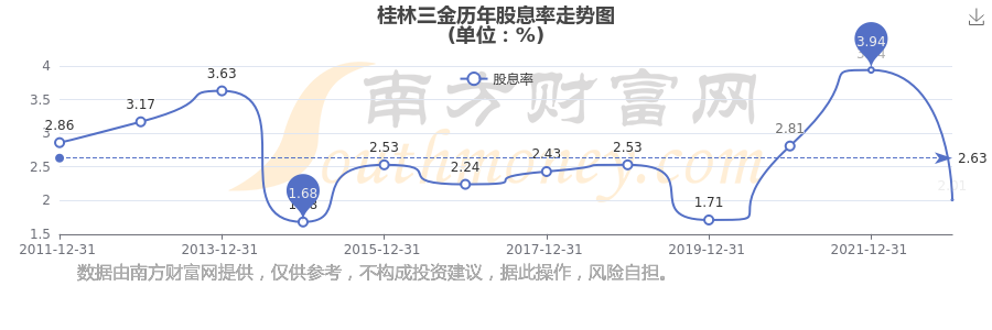 近年桂林三金年度股息率走勢如下圖: