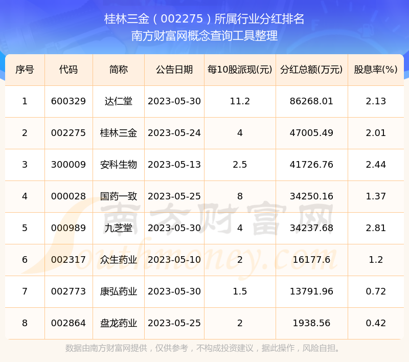 二、桂林三金002275行業(yè)分紅排名