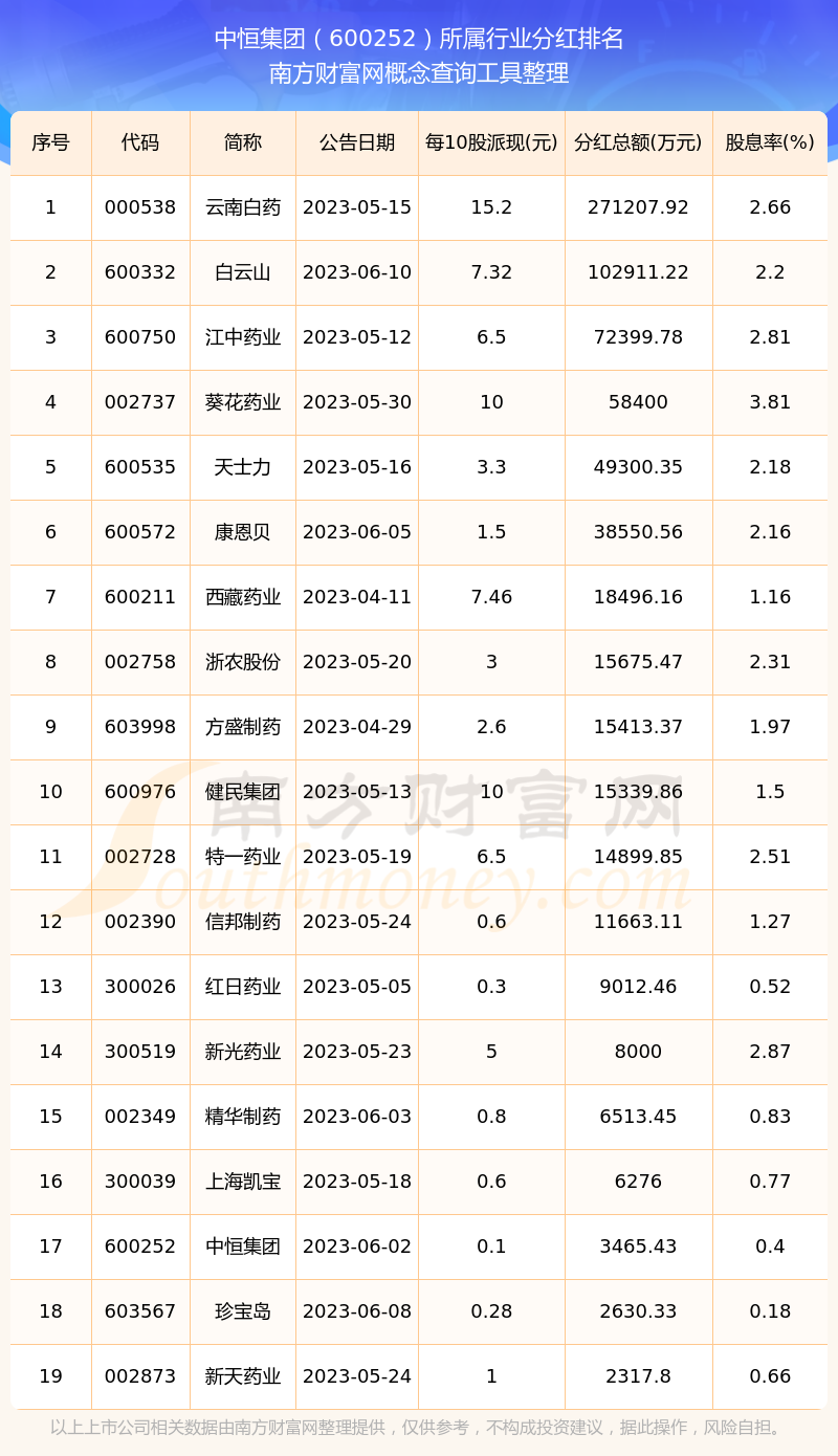 二、中恒集團(tuán)600252行業(yè)分紅排名
