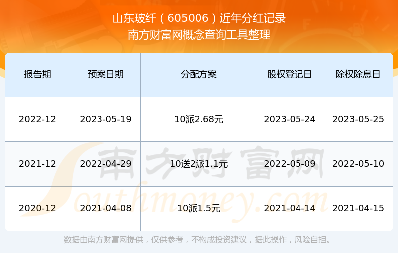 山東玻纖歷年分紅派息情況如下表所示:
