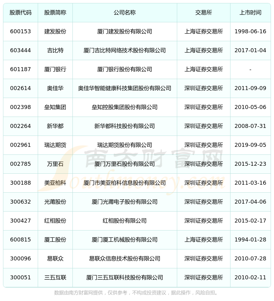截至12月17日,廈門思明區(qū)共有14家上市公司,南方財富網(wǎng)趨勢選股系統(tǒng)為您整理了廈門思明區(qū)在A股上市的公司。